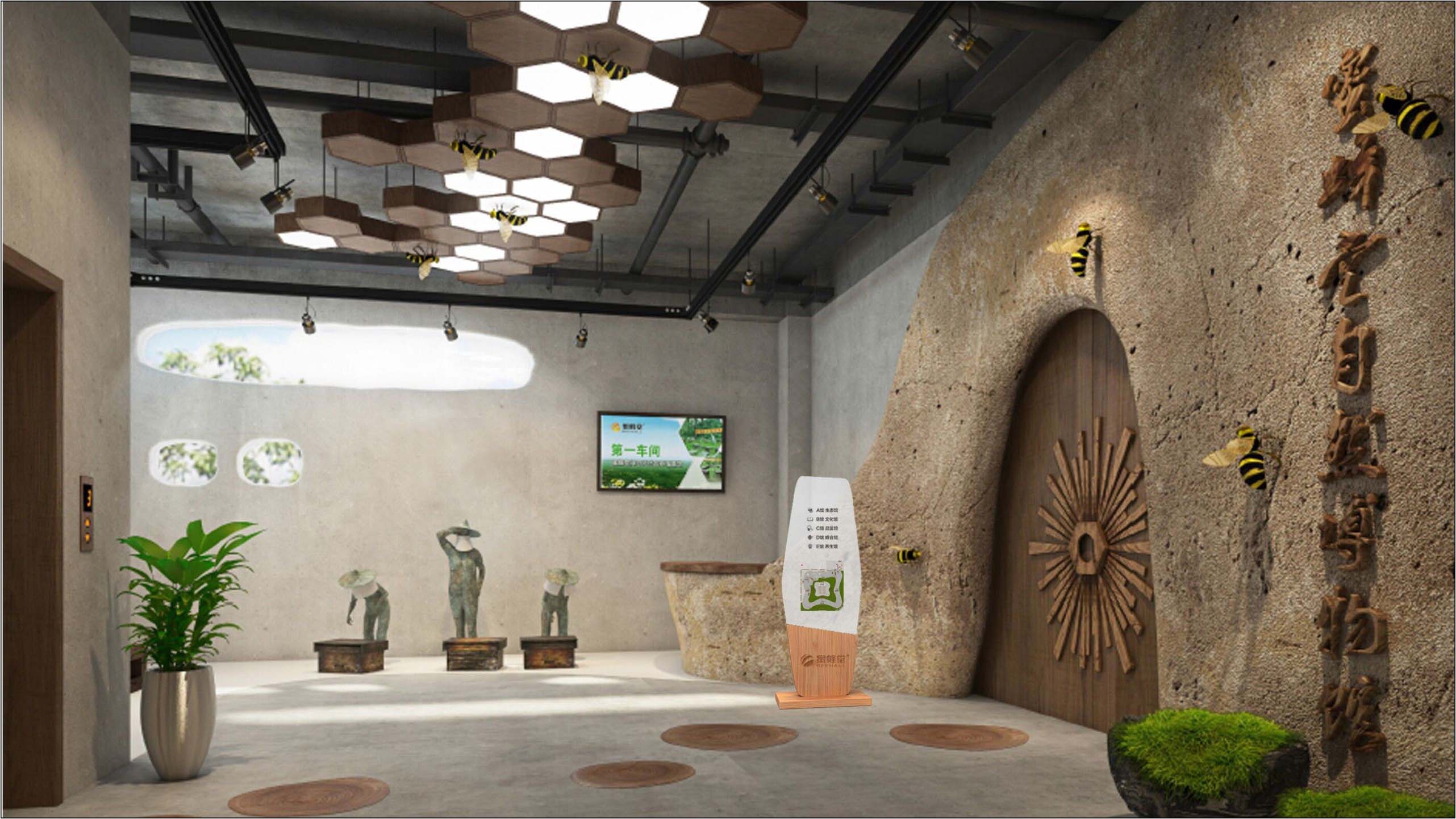 展馆分为生态馆、品鉴馆、文化馆、蜂会馆、养生馆五个部分,通过环保材质、艺术装置、光影技术、电子产品的运用,打造艺术科技化、自然原生态、体验性的蜜蜂博物馆。
