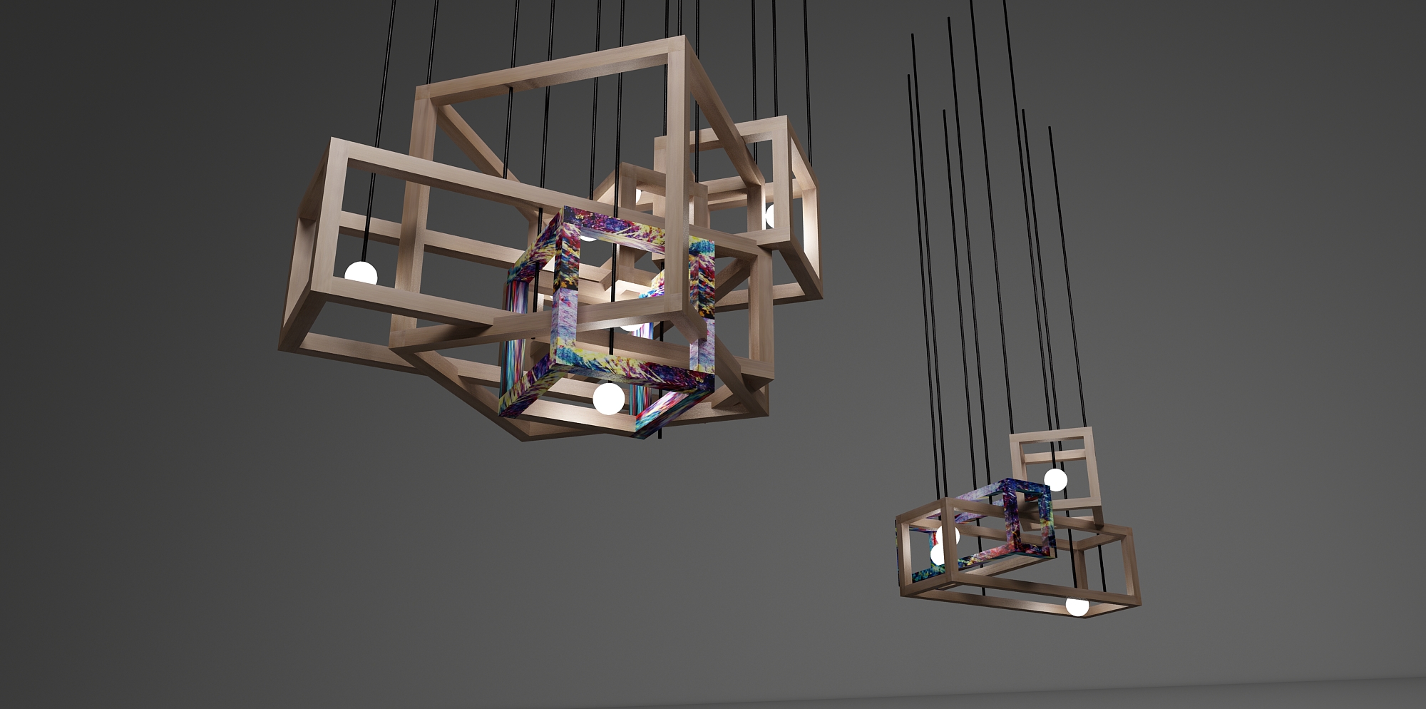 以几何形状相互嵌入的方式,组成产品基本形态;以色彩点缀细节,高低错落,层次分明。抬眼即斑斓,万象在眼前。